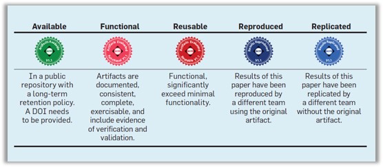 ACM recommends three separate badges related to artifact review be associated with research articles in ACM publications: